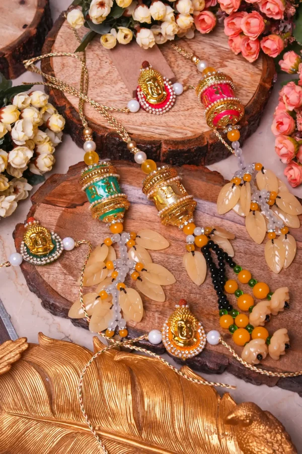 Home Serenity Edition Buddha Prayer Wheel Lumba and Rakhi Set 🔍 Buddha Prayer Wheel Lumba and Rakhi Set₹650.00 Select Colour Choose an optionGoldenGreenRedGoldenGreenRedClear Buddha Prayer Wheel Lumba and Rakhi Set quantity Add to cart Free shipping on orders above Rs 1000/-Secured payments Related products Zardozi Work Lumba with Buddha Hanging and Rakhi ₹750.00 Add to cart Buddha Locket Lumba and Rakhi Set ₹550.00 Select options Tara Lumba and Rakhi Set ₹650.00 Add to cart Divine Buddh Rakhi ₹250.00 Add to cart